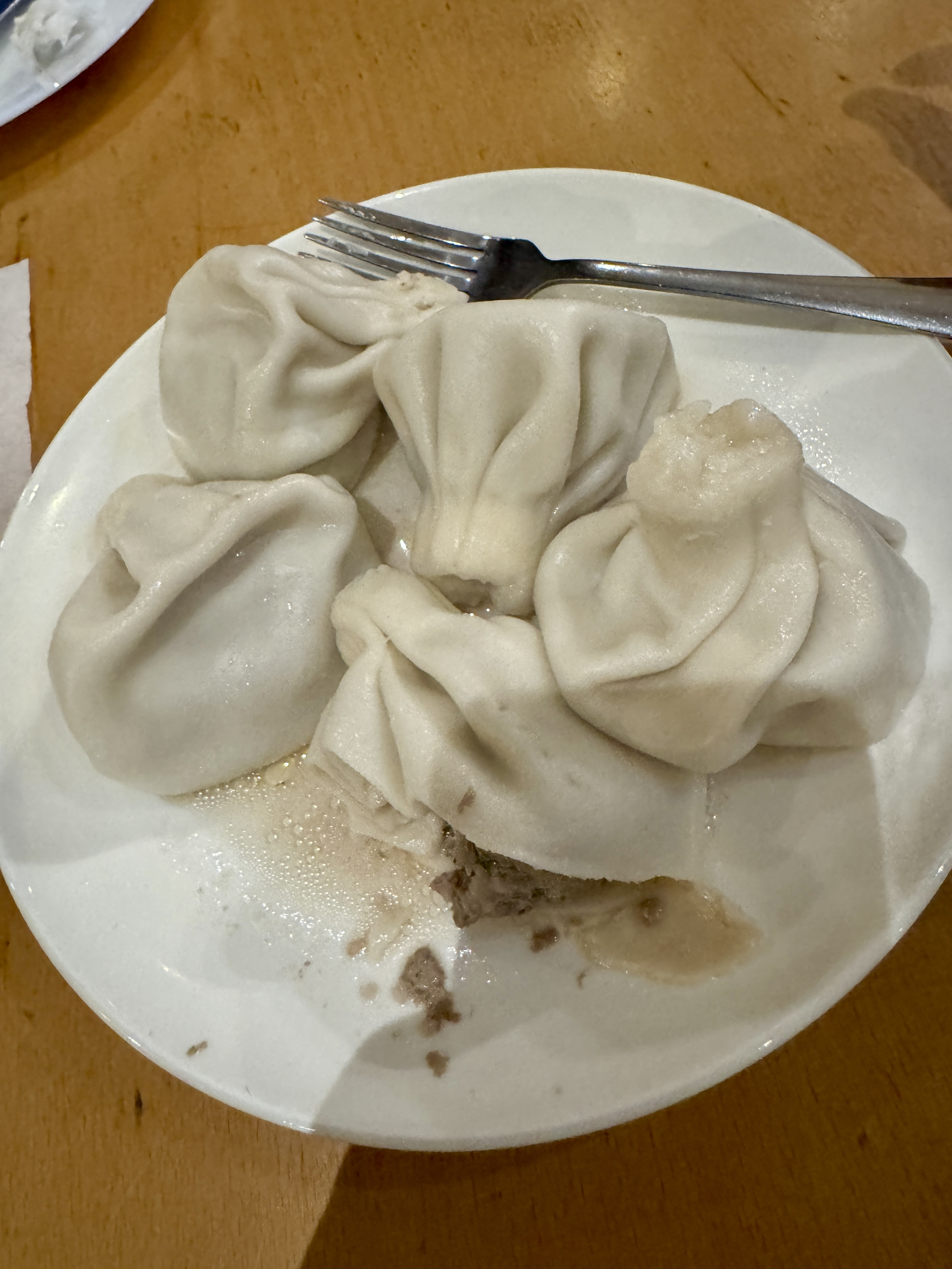 കുറച്ചുകഴിഞ്ഞ് ഖിങ്കാലി വെയിറ്റർ കൊണ്ട് തന്നു, അഞ്ചണ്ണം ഉണ്ടായിരുന്നു ഒരു പ്ലേറ്റിൽ. അത് കിട്ടിയപ്പോൾ ഞാൻ ഒന്നെടുത്ത് കത്തികൊണ്ട് മുറിച്ച് കഴിക്കാൻ ശ്രമിച്ചു. അപ്പോൾ പാത്രത്തിലോട്ട് അതിനുള്ളിലെ സൂപ്പ് ഒഴുകിയിറങ്ങി. ഇത് കണ്ട് എനിക്കിത് കഴിക്കാൻ അറിയില്ലയെന്ന് മനസ്സിലാക്കിയ ഒരു വെയ്റ്റർ എൻറെ അരികിൽ വന്നു പറഞ്ഞു, “അത് കയ്യിൽ എടുത്ത്, ചെറുതായി കടിച്ചിട്ട് അതിലെ സൂപ്പ് കുടിക്കണം ആദ്യം, എന്നിട്ട് വേണം ബാക്കി കഴിക്കാൻ”. അപ്പോഴാണ് അതിനകത്ത് സൂപ്പുണ്ടന്നും, അത് എങ്ങനെയാണ് കഴിക്കേണ്ടതെന്നും എനിക്ക് മനസ്സിലായത്. യാത്രകൾ നമ്മളെ പുതിയ പല കാര്യങ്ങളും പഠിപ്പിക്കുമെന്ന് മനസ്സ് മന്ത്രിച്ചു അപ്പോൾ.