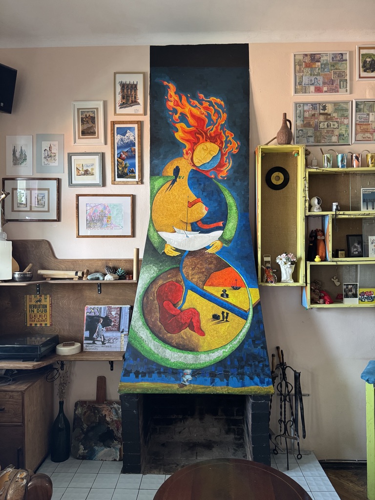 ഞാൻ വാതിൽ പതിയെ തള്ളിത്തുറന്നു. ഇന്സ്റ്റഗ്രാമിലെ സൗന്ദര്യാത്മകത നിറഞ്ഞ റീലുകൾ കാണുന്നത് പോലെ ഭംഗിനിറഞ്ഞ ഒരു അകത്തിടം. അകത്തു കയറി വാതിൽ അടച്ചപ്പോൾ, അവിടെ ആരുമില്ല. വാതിലിന്റെ പുറകിൽ ഒരു ചാർലി ചാപ്ലിന്റെ പെയിൻറിംഗ് ഉണ്ടായിരുന്നു, അതിനോട് ചേർന്ന് വലിയൊരു ഷൂറാക്കും, തൊട്ട് അപ്പുറത്ത് മുകളിലോട്ട് പോകാനുള്ള കോണിപ്പടിയും, അവയുടെ മുന്നിലായി ചെറിയൊരു ലീവിങ് സ്പേസം. പല നിറത്തിലുള്ള ചുറ്റുമുള്ള ചുമരുകളിൽ കഴിവുള്ള ഏതോ കലാകാരന്റെ നിറങ്ങൾ പൂക്കളായും ചെടികളായും ഭൂമിയായും അവിടെ നിറഞ്ഞ് നിന്നു.